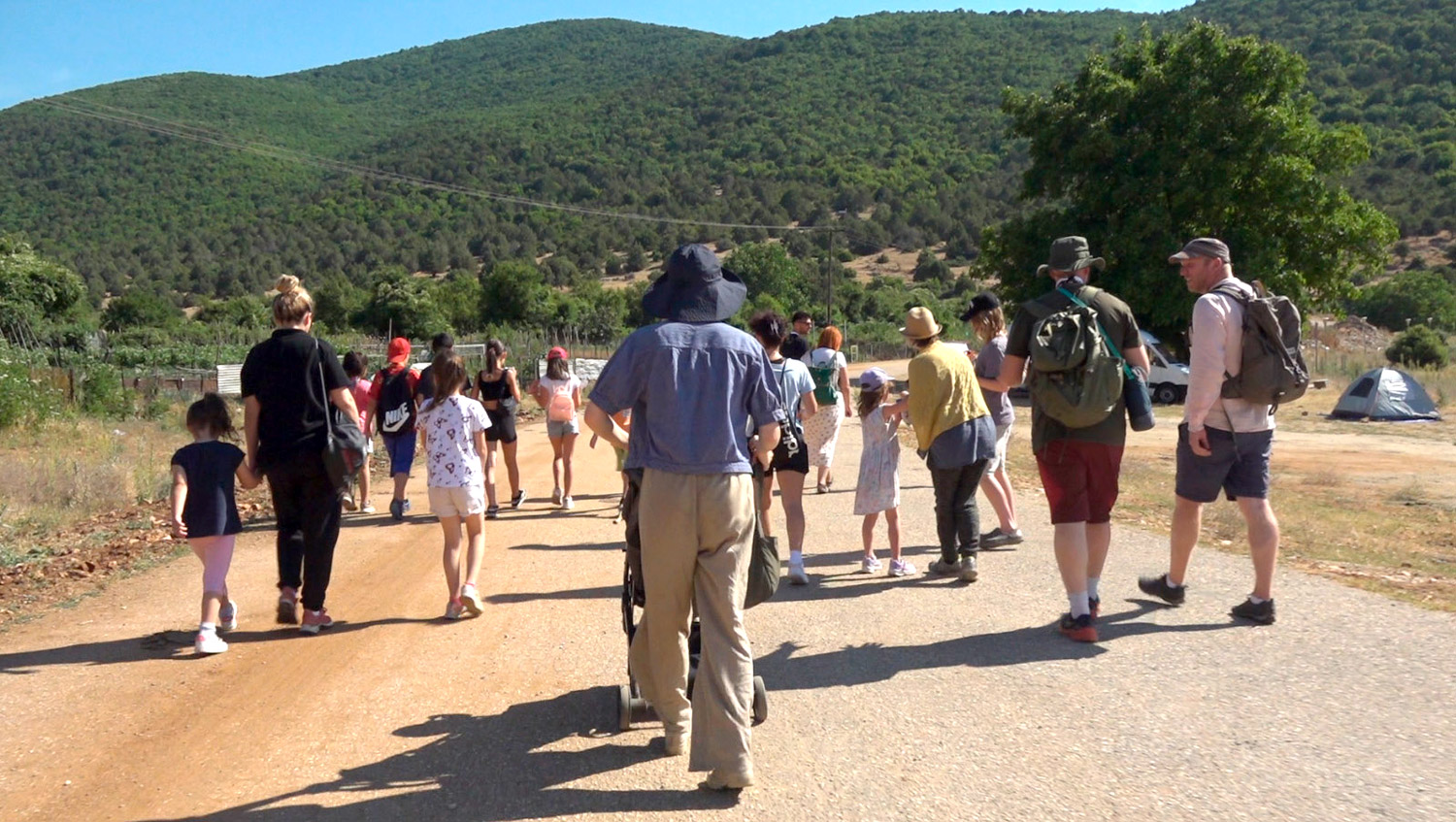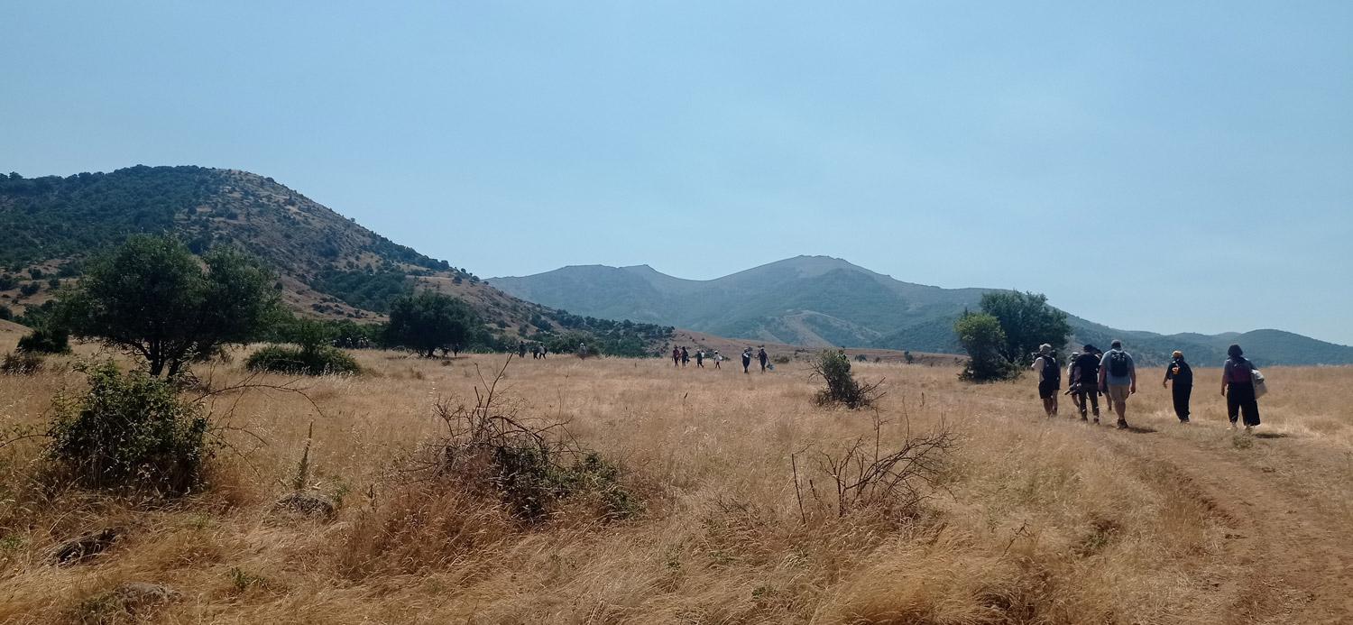The symbolic march from the borders of Laimos to Psarades retraced forced displacements during the Greek Civil War. Drawing on testimony from a returned child refugee, the walk transformed the landscape into a mnemonic device, embedding absence, endurance, and loss into Prespa’s terrain. In the context of contemporary migration crises, the walkshop underscored the continued relevance of uprooting and belonging, embedding these themes into Prespa’s terrain.